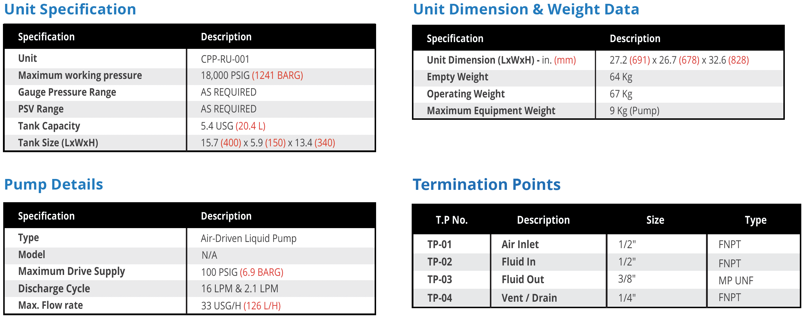 Checkpoint’s air-driven liquid pump is designed for high-pressure testing applications for various systems, including pipelines, vessels, valves, and pressure packages to ensure integrity and safety. Serves industries such as oil and gas, petrochemical, aerospace, manufacturing, and more.
