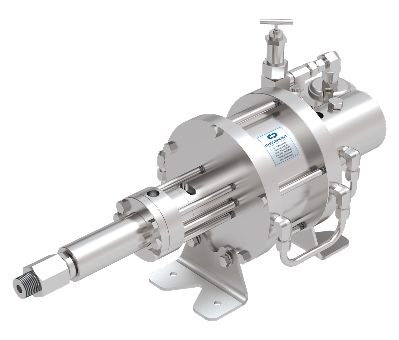 CheckPoint’s positive displacement, reciprocating chemical injection pumps are specifically designed for, and extensively proven in, demanding oil and gas production applications worldwide. Our pumps are utilized in various industries, such as pulp, water treatment, fertilizer dosing, paper, and fluid processing applications, where precise delivery is operationally paramount. The pneumatic motor, composed entirely 316L SS, remains isolated from the wet end and is dependably able to run on pressurized gas or liquid without stalling. Check-Point’s double-acting design eliminates a return spring, which greatly increases repeatability and reliability over time.