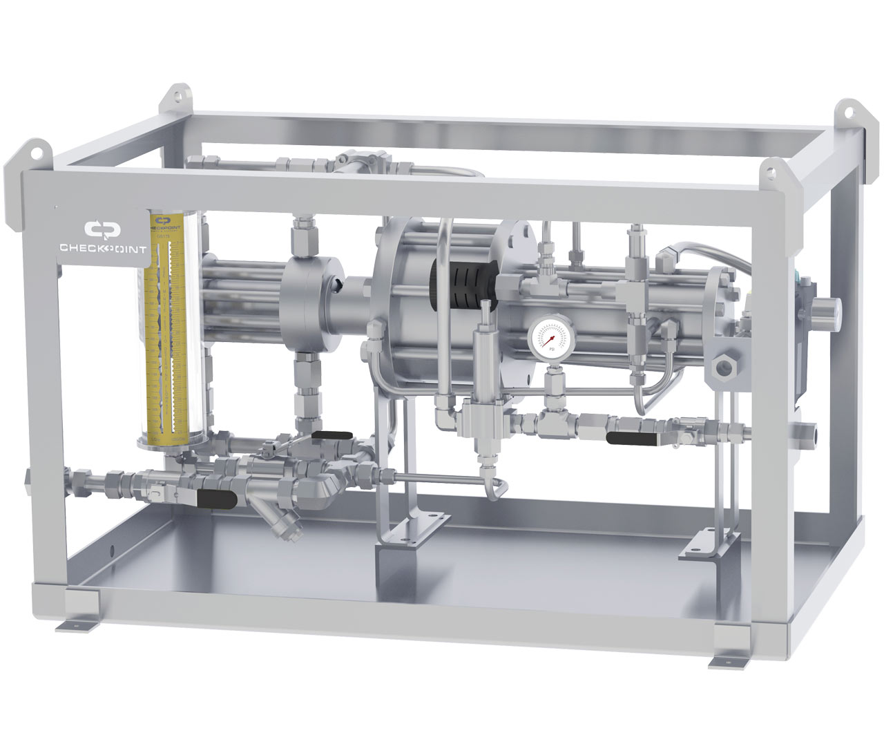 CheckPoint’s Series 8400 pump delivers between 0.83 – 585 USG/H (3.14 – 2,214.47 L/H) and can reliably inject into pressures up to 20,000 PSIG (1,379 BARG).