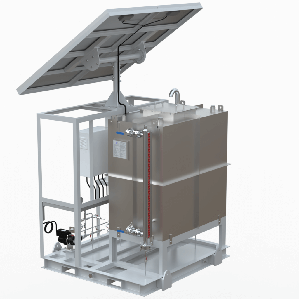 This custom solar system was designed to inject at 0.87 USG/H (3.3 L/H) and 507 PSIG (35 BARG).
