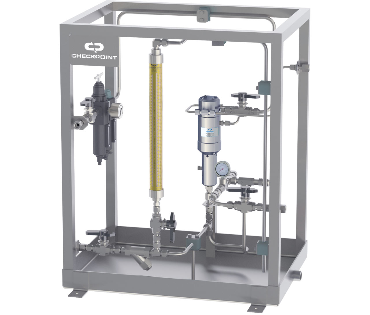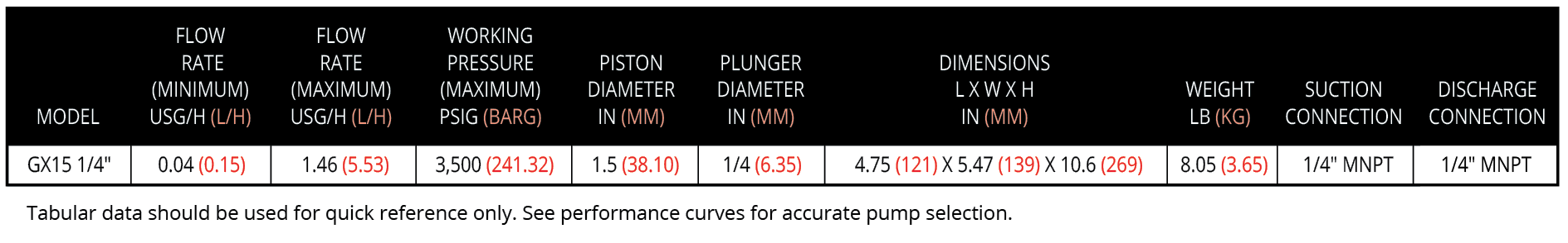 CheckPoint’s Series GX15 pump delivers between 0.04 – 1.46 USG/H (0.15 – 5.53 L/H) and can reliably inject into pressures up to 3,500 PSIG (241.32 BARG).