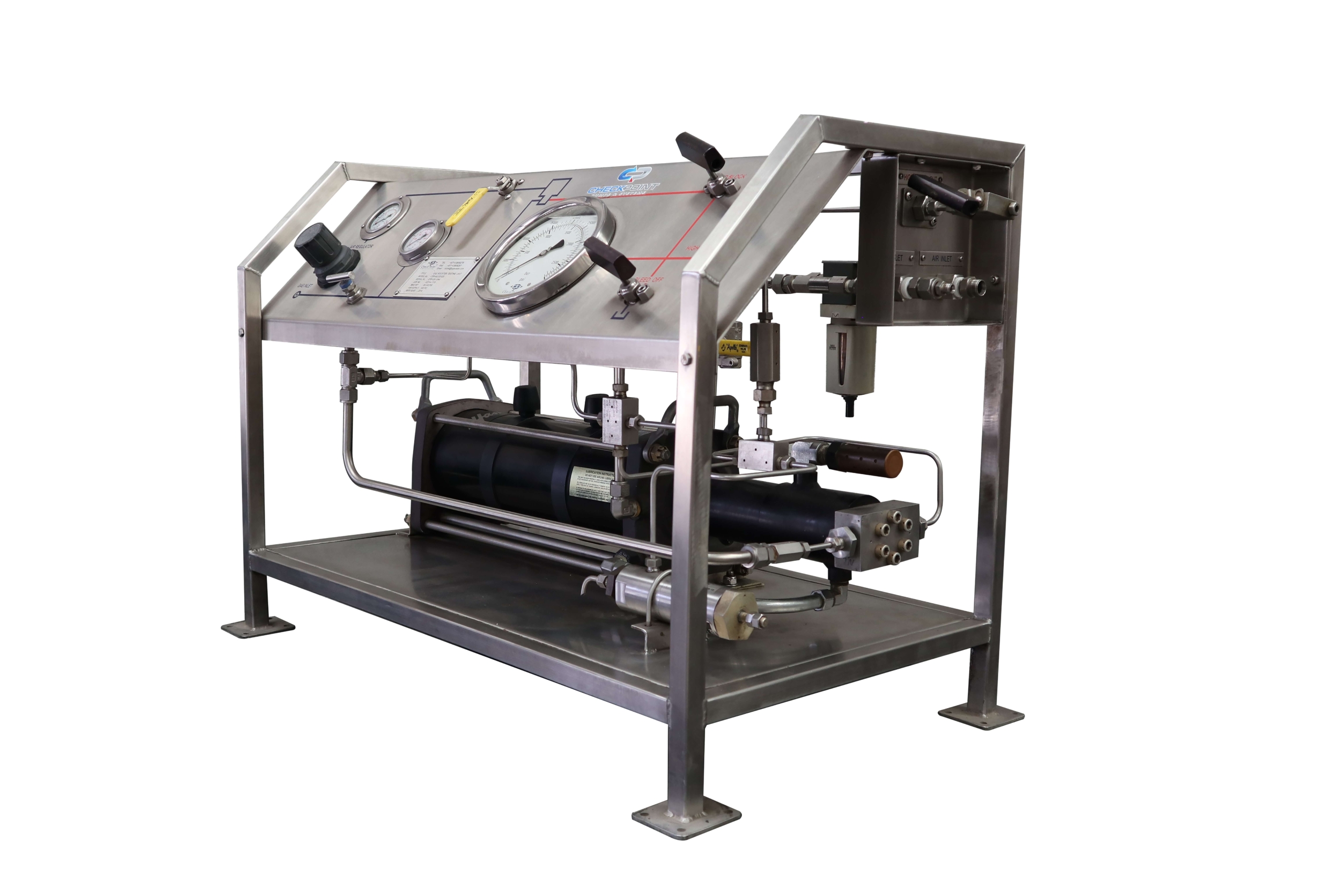 Checkpoint’s gas-driven double-acting long stroke series pump is designed for high-pressure testing applications for various systems, including pipelines, vessels, valves, and pressure packages to ensure integrity and safety. Serves industries such as oil and gas, petrochemical, aerospace, manufacturing, and more.
