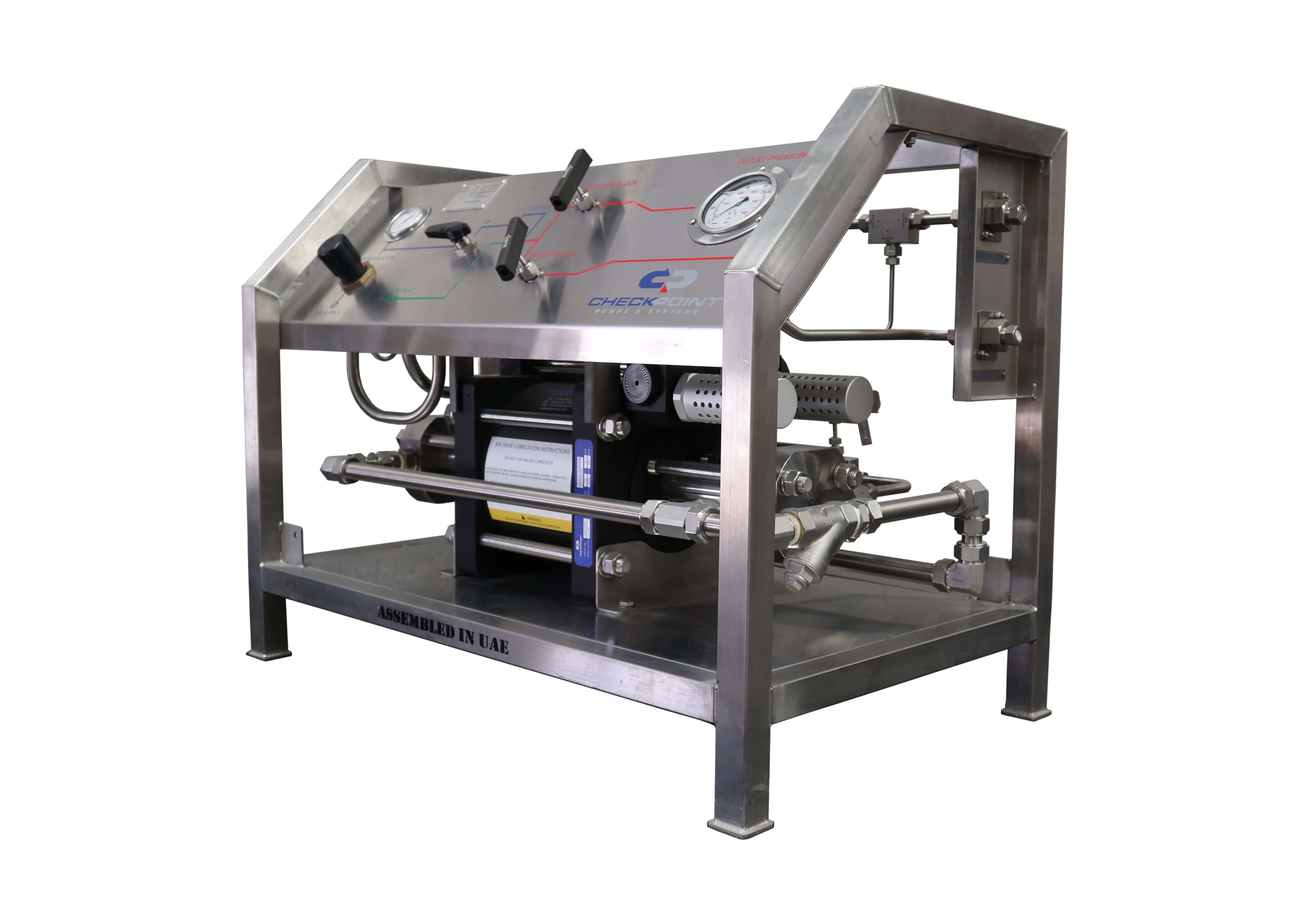 Checkpoint’s air-driven liquid pump is designed for high-pressure testing applications for various systems, including pipelines, vessels, valves, and pressure packages to ensure integrity and safety. Serves industries such as oil and gas, petrochemical, aerospace, manufacturing, and more.
