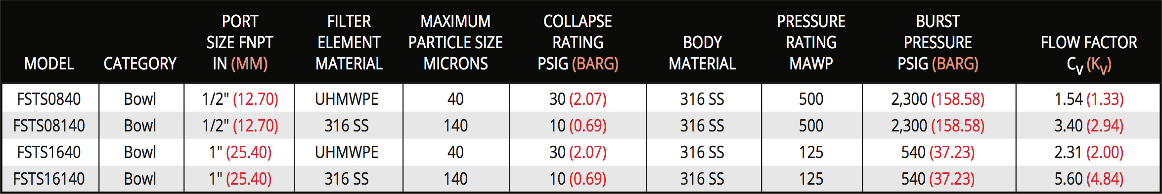 CheckPoint designed the ST Chemical Filter to fit the niche between expensive, high-pressure chemical filters and inexpensive, less protective Y-strainers. The ST Chemical Filter utilizes filtration qualities found in high-pressure filters, such as increased system protection and a chemically inert element. The ST filter is housed in 316 SS, with chemically inert filter elements available in 316 SS and UHMWPE . The surface areas of both the 1⁄2″ and 1″ filter elements are greater than the surface area of a typical Y-strainer, which allows for tighter filtration (as little as 40 microns) and excellent flow ratings.