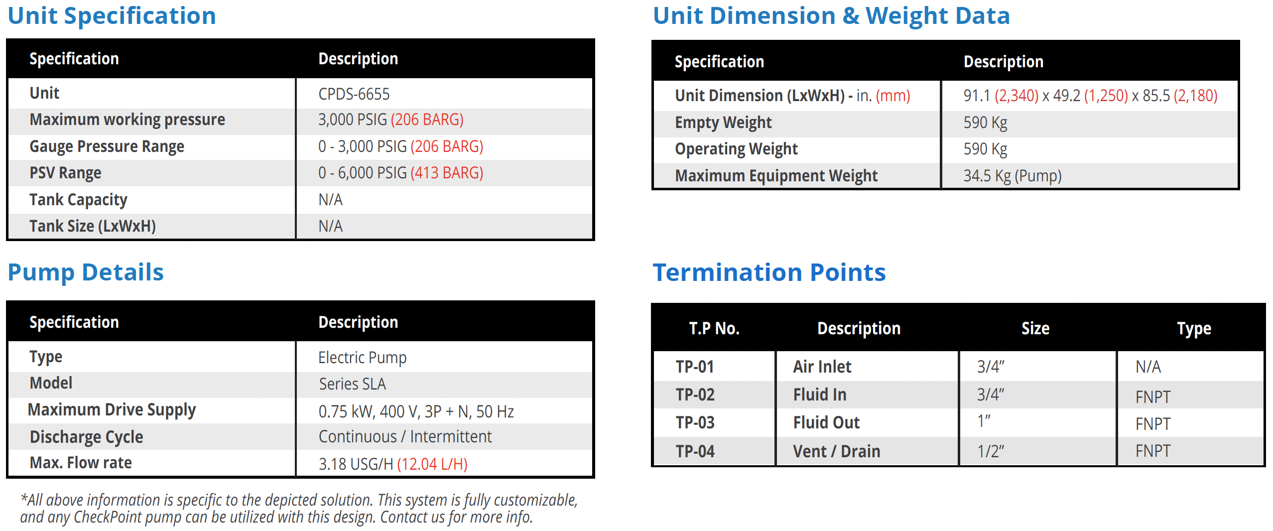 All information is specific to the depicted solution designed around a client’s specific requirement. This system is fully customizable, and any CheckPoint pump can be utilized with this system design. Contact us to design your perfect system.
