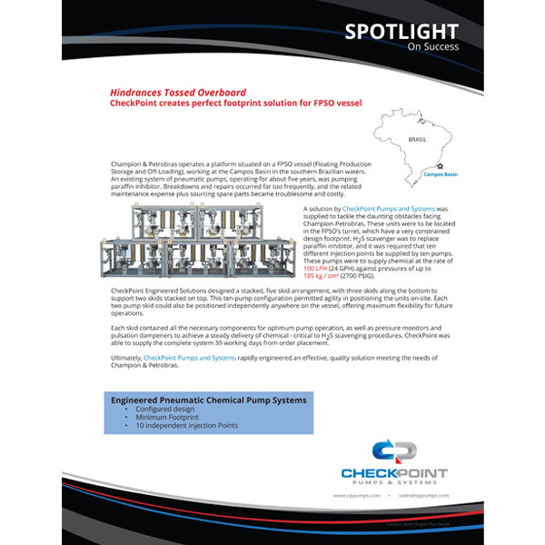 Ultimately, CheckPoint Pumps & Systems rapidly engineered an effective, quality solution meeting the needs of Champion & Petrobras.